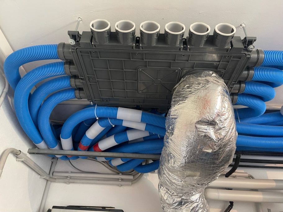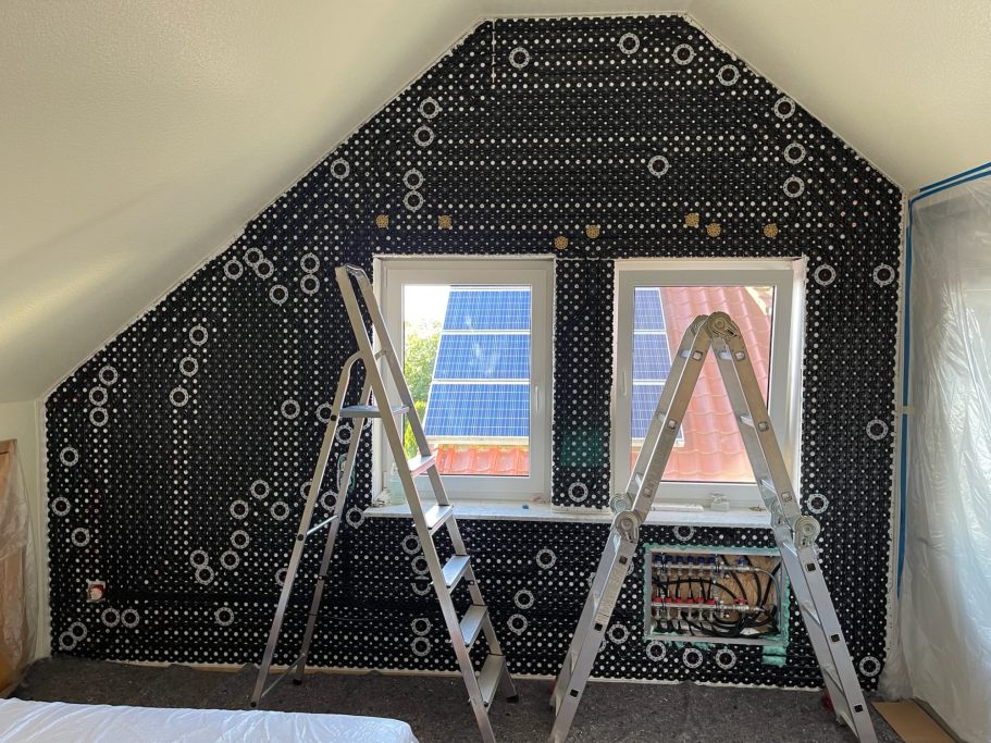 Flächenheizungen an Boden, Wand oder Decke, nutzen die gesamte Raumfläche für eine gleichmäßige Strahlungswärme. Da sie mit niedrigen Vorlauftemperaturen arbeiten, sind sie besonders effizient in der Kombination mit Wärmepumpen.