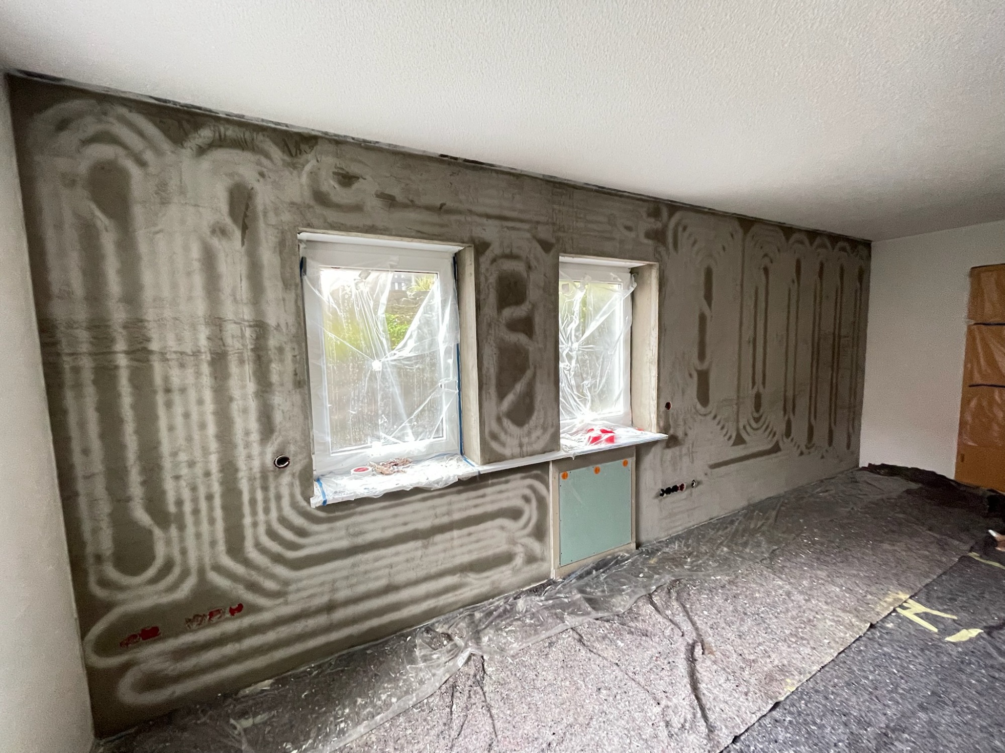 Flächenheizungen an Boden, Wand oder Decke, nutzen die gesamte Raumfläche für eine gleichmäßige Strahlungswärme. Da sie mit niedrigen Vorlauftemperaturen arbeiten, sind sie besonders effizient in der Kombination mit Wärmepumpen.